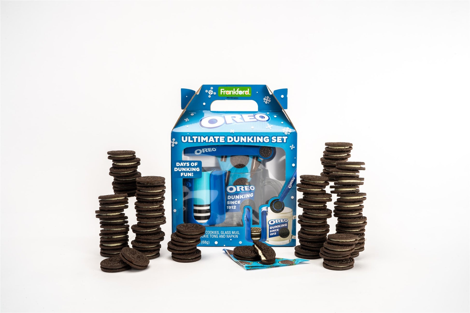 Dunking your OREO® without all the mess, genius! The Ultimate OREO® Dunk Set is the gift that keeps on giving. Includes 1 dunking tong, 1 glass mug, 1 cookie cage to house your cookies, 1 napkin, and a 6 pack of classic OREO® cookies. Makes a great holiday gift for kids of all ages, teachers, parents, grandparents, and friends. This is also a fantastic way to upgrade your milk and cookies for Santa tradition,. No-mess dunking tongs will have him back on his way delivering presents in no time! This product is part of our exclusive ONLINE ONLY collection, available for digital purchase only.